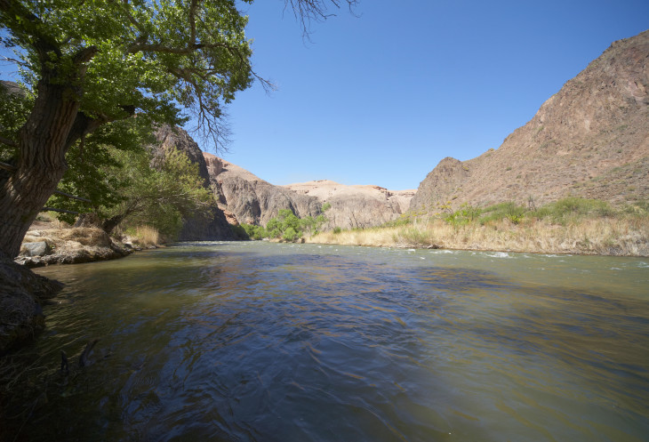 Сейчас в река Чарын сменила русло и в самом каньоне воды нет, но она есть чуть дальше. После каменного и пустынного мира марсианских пейзажей, дорога неожиданно выходит к полноводной реке. Здесь настоящий оазис – огромные ивы на берегу, зеленая травка и приятный ветерок!