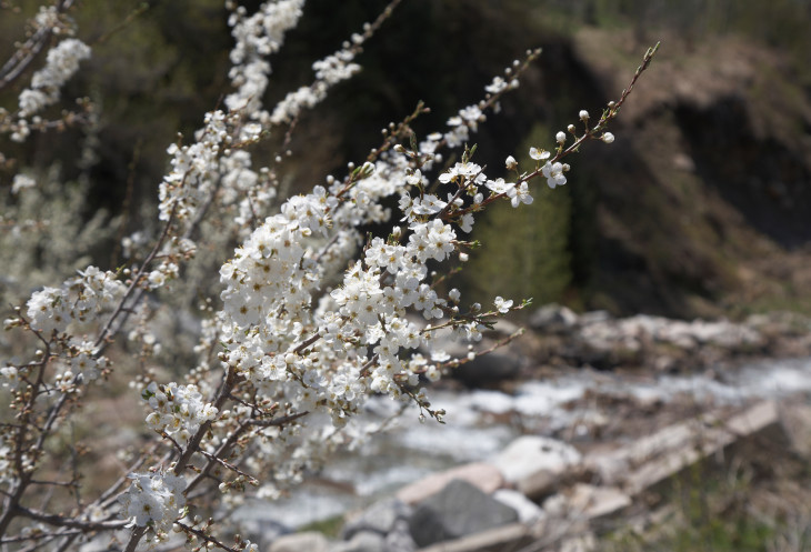Из зимы спускаемся сначала в весну на Медеу – там свежая травка и много цветов.