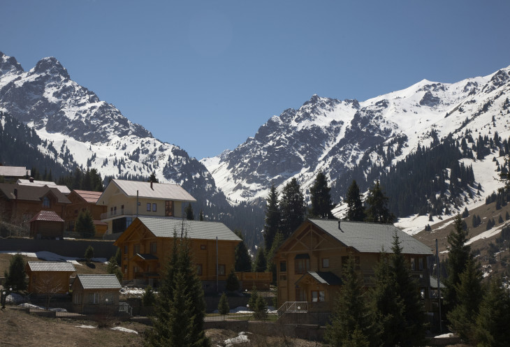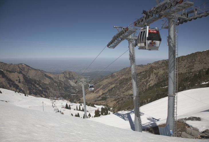 Дальше наверх горнолыжные трассы – в начале мая на Талгарском лежит снег и народ катается на лыжах. Снег, конечно, очень мокрый – выходишь с канатки и проваливаешься по колено.