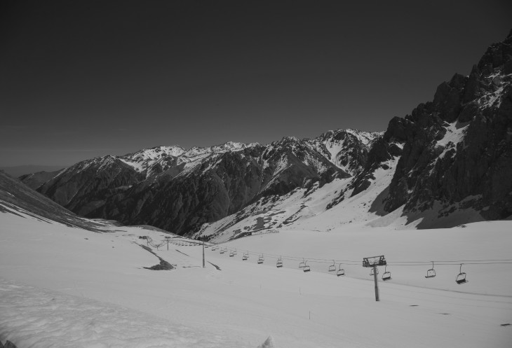 Стою я на Талгарском, смотрю вниз, в сторону Левого Талгара, куда теперь уходит еще одна нитка канатной дороги. И как-то мне грустно и неуютно. Вот с одной стороны, это все та же знакомая Заилийка, где еще осталось столько суровых или не очень маршрутов, а с другой стороны – еще немного такими темпами, и на Солнечную Поляну можно будет приехать, а не прийти. И вроде я все та же, и меня тоже ждут эти суровые и не очень маршруты, да вот только я-то на эти 3200 тоже приехала, а не пришла, и сейчас сделаю пару кадров и поеду вниз.