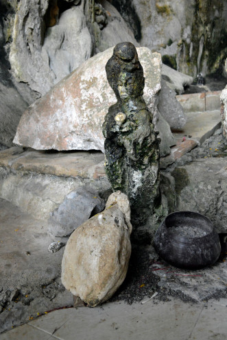 С интересом, заходим в пещеру.Она не очень большая.С потолка свисают сталактиты и корни деревьев.В глубине что то типа алтаря со скульптурой Будды.Знаменитый сталагмит,как будто похожий на Будду.Правда,хоть и говорят,что его не касалась рука человека,верится в это с трудом)) Ну да ладно...)))