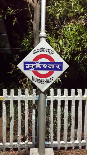 В разговоре время пролетело в мгновение. Поезд очередной раз дал по тормозам, и мимо нас промелькнула надпись с названием станции- Murdeshwar.