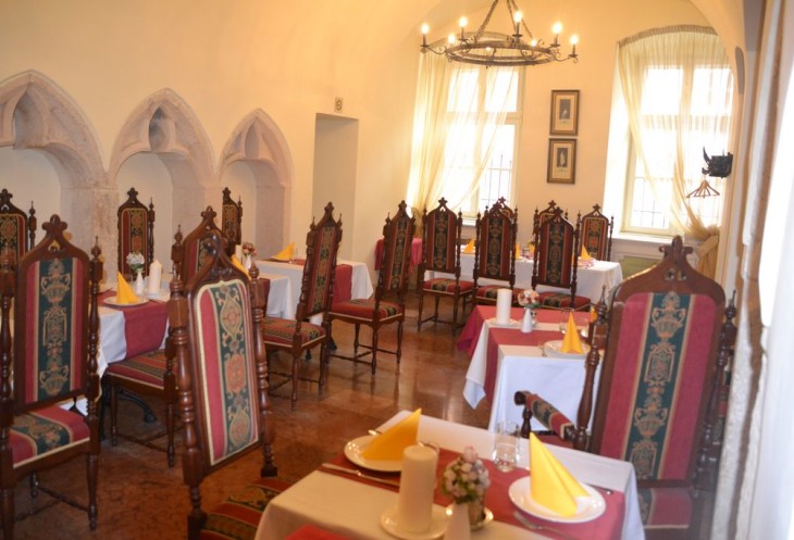 Иначе и не назвать обеденное помещение, уставленное тяжелыми дубовыми столами и стульями с высокими резными спинками.
