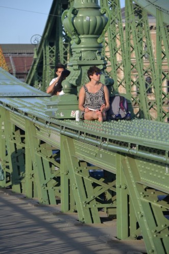 Мост порадовал множеством людей, отдыхающих сидя прямо на стальных конструкциях моста. Конструкции эти достаточно широкие и как будто для того и предназначены.