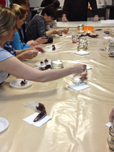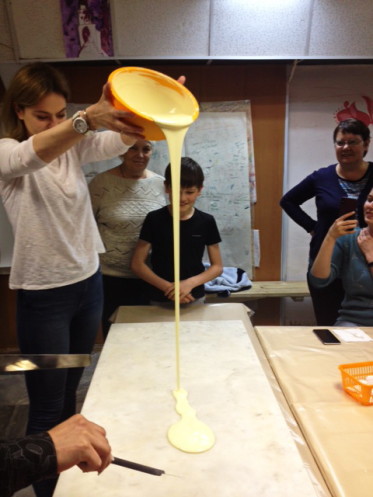 В этом волшебстве и мы участвовали. Разливали шоколад по мраморной плите,