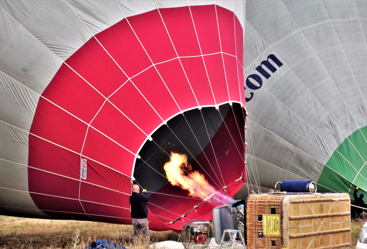 Мы наблюдали за тем, как шар готовят к полёту, вдыхают в него жизнь, он расправляется, расширяется- и рвётся в небо- только держи! А вокруг, в небе уже парят его счастливые товарищи.