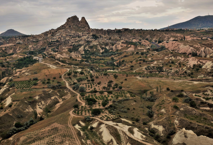 Первая остановка была у подножия крепости Учхисар, которая , является самой высокой точкой в регионе. где мы погуляли по тропинкам между скалами- домиками. Когда смотришь на эти скалы, кажется, что ты в сказке, что вот-вот по тропинкам побегут муми тролли, а из окошка неожиданно выглянет эльф... Ну не может, не может быть такого на нашей земле! А есть! Настоящее! Удивительное! Только смотри и радуйся.