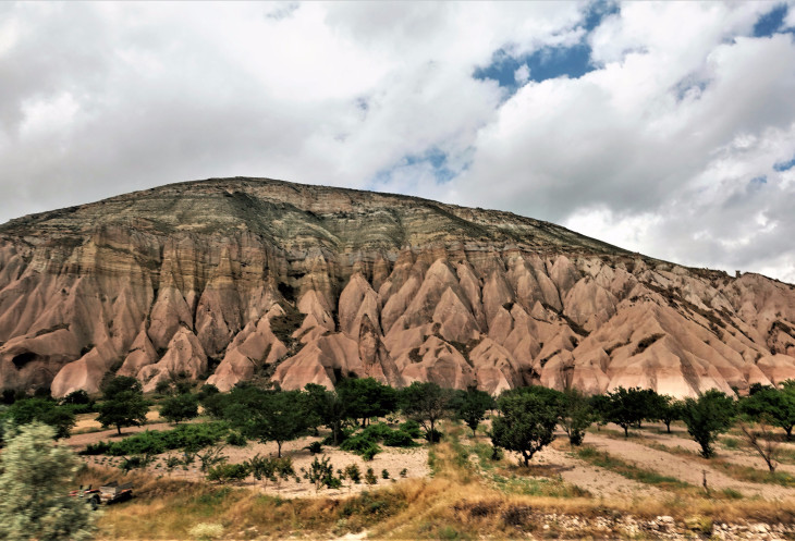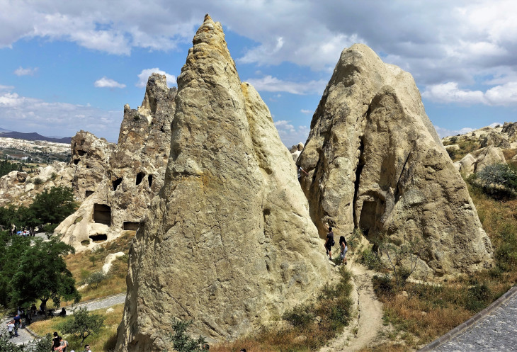 Вот тут мы и насмотрелись от души необычайно красивых и ставших уже, наверное, визитной карточкой Каппадокии знаменитых каменных столбов, или каменных грибов. Образовалось всё это чудо в результате миллионолетней работы природы: активной деятельности вулканов с выбрасыванием пепла и лавы, которые откладывались слоями, превращались в туф и базальт. А ветер, дожди, перепады температуры приводили к эрозии. В результате на свет божий появилась эта нереальная сюрреалистическая местность под названием Каппадокия: все эти волшебные трубы фей (по-турецки называется , peribacalar / перибаджалар, или по-английски fairy chimneys) немыслимые каньоны, долины, нереальные фигуры. К сожалению, то, что когда-то создало эту фантастическую местность, оно же ее и погубит. Эрозия продолжается, а значит, когда-нибудь вся эта красота исчезнет.