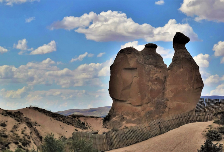 Останавливались в Пашабаг (по правилам турецкого языка, произносится «ПашабА»), или Долине монахов – одной из красивейших долин Каппадокии. Здесь природа постаралась, разбросала двух и трёхглавые «грибы»- они образовались из мягкого туфа, а шапочки на них- из более твёрдого базальта. Еще в древности, где-то в 10-11 веке, а то и раньше, здесь селились монахи. Жили уединенно, выкапывая в мягкой породе "грибов" себе кельи. Теперь на месте келий- окошечки в скалах- грибах, как в причудливых замках. Как говорят легенды, монахи ночами зажигали свечи и в долине светились огоньки, похожие на сказочные камины. Их сейчас незывают "камины фей". Когда бродили по этой долине, нас не оставляло ощущение какой-то нереальности, инопланетности окружаюшего...