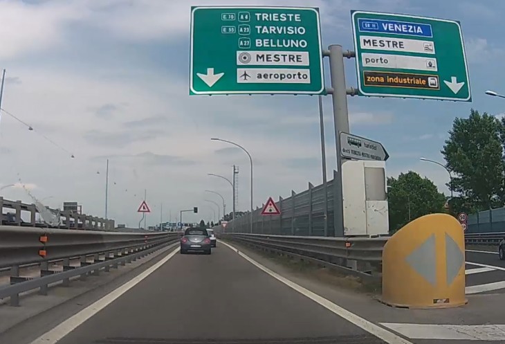 В районе Тревизо местами пробки как на зло. У нас обычно в пробках поток уплотняется, некоторые итальянцы почему то оставляют пространство до следующей машины в 3-4 корпуса чем я и пользовался.