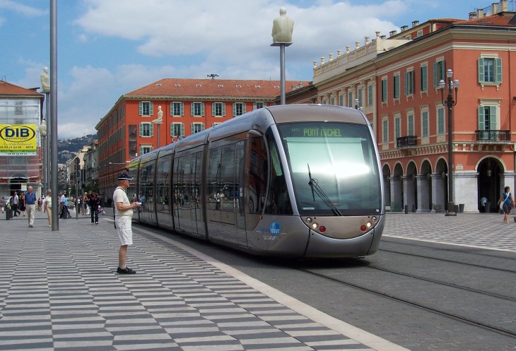 (трамвай в Ницце, как и в Бордо, без контактного провода)