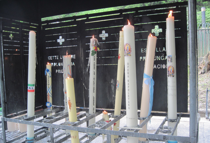 А я до Лурда пока не добралась. Но видела, как в португальской Фатиме паломники ползут на коленях по выложенной на площади мрамором дорожкой. А свечи не ставят в подсвечники, а просто бросают в огромную топку.