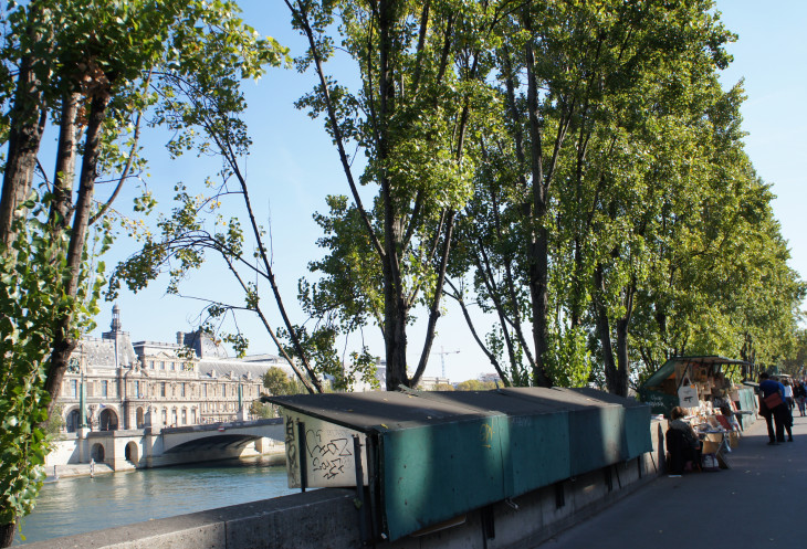 Вдоль набережной Сены просыпаются коробейники и открывают свои короба с книгами и пластинками.