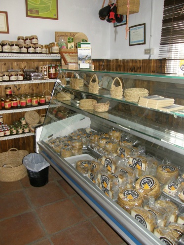 Сразу с хранилища мы отправились в магазин, который открыт тут же, рядом с производственными цехами. Здесь происходит дегустации продукции. Я попробывала йогурт, сьела пару кусочков сыра. Чтобы не так сухо было, гостеприимный хозяин отрезал ломоть душистного деревенского хлеба и открыл бутылочку местного красного вина. Хуан говорит, что такие действия он проделывает с каждой группой посетителей. Вино располагает к приятной беседе. Он в это время рекламирует свой товар.