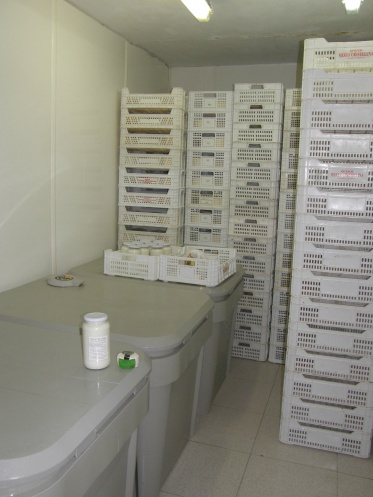 Я побывала в хранилищах «Сьерра Крестельина», где созревает сыр. Там как и во всяком погребе - прохладно. В воздухе чувствуется кисломолочный запах. Хуан показал, кук вручную они переодически переворачиваю сыр. Раньше головки укладывались на деревянных полках, сегодня же для удобства используются пластиковые ящики.