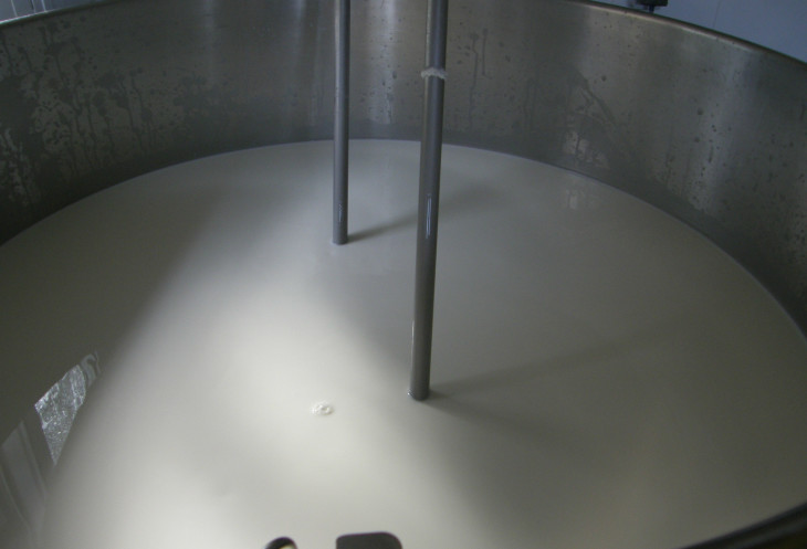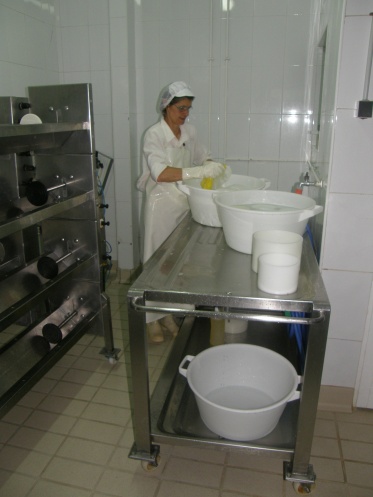 Мы посетили цех, где полным ходом шёл процес дойки. Работа кипела. Аппараты быстро собирали молоко, которое по трубе сразу же поступало в цех для переработки. Как проинформировал нас Хуан, ежедневный удой фермерского хозяйства составляет от 800 до 1000л молока. Большая часть его идёт на изготовление сыра, остальное – для йогурта. Ведь чтобы приготовить 1кг сыра необходимо около 8л молока.