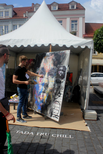 Рядом находится Ратуша и Ратушная площадь, в нашем случае по поводу субботы и, возможно, какого-то местного праздника, вся заполненная творческими людьми и коллективами. И современным искусством, конечно.
