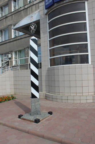 У крылечка Почтамта верстовой столб «Нулевой километр».