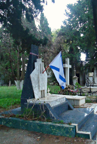 И каким ярким пятном среди этого серого уныния реет Андреевский флаг на могиле офицеров и моряков Русской эскадры! На памятнике надпись «В память о моряках Русской эскадры и всех российских людях, покоящихся в Тунисской земле». Около ста российских офицеров покоятся в Бизерте и на православной части кладбища Боржель в столице Туниса - Тунисе.