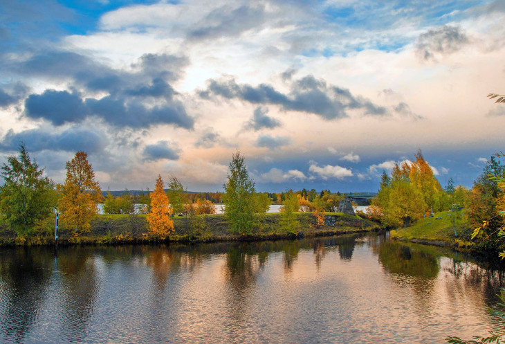 Часа через полтора переехали мост в городке Пелло и оказались в Швеции. А здесь тоже попадаются олени. И еще красивая речка, вдоль которой мы долго едем по Швеции, а на другом берегу Финляндия. Вот на этом фото мы все как раз на берегу этой речки по имени Торнионйоки (как звучит-то!).