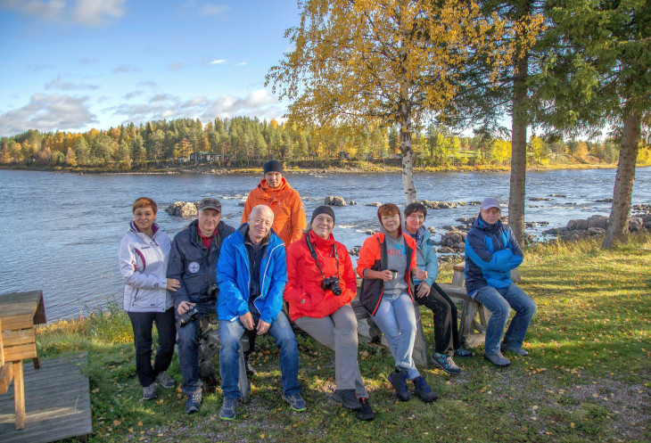 В 5 часов утра вылетели Екатеринбург - Хельсинки – Рованиеми, куда и прибыли в 14 часов по местному времени. В аэропорту получили автомобили, и уже в 16.00 в симпатичном домике отметили «наркомовскими» 100 граммами прибытие и, несмотря на весьма мокрую погоду, пошли прогуляться по городку. Еще не дойдя до парка, что на берегу речки Оунасйоки, весь народ, коллективное помешательство какое-то(!), с восторженными детскими криками, бросился собирать грибы (шикарные белые, подберезовики), растущие прямо вдоль тропинки и не успокаивался, пока не набрали полиэтиленовый куль! То ли их тут вообще не собирают?