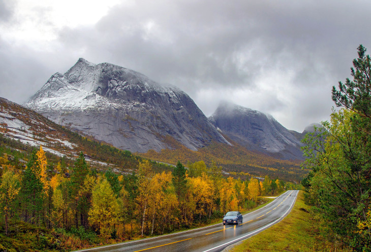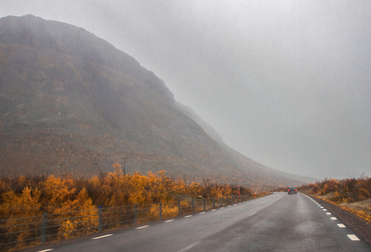 По мере продвижения на север начинает ухудшаться погода. Ближе к Норвегии уже вовсю идет дождик, практически сплошная облачность, все серое-серое.