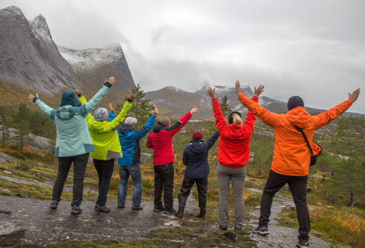 На обратном пути показываю ребятам вершину горы Selvagtinden, на которую мы завтра отправимся. Вот она на снимке в центре: