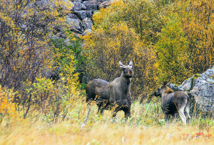 Они спокойно смотрели на нас до тех пор, пока наши машины не остановились. Мамаша подумала немного и, на всякий случай, увела лосенка подальше за деревья. Сглазят еще, не дай Бог, эти туристы…