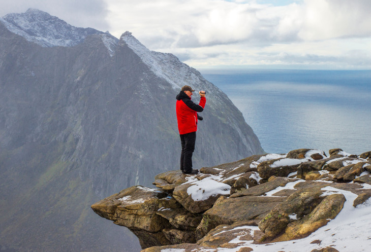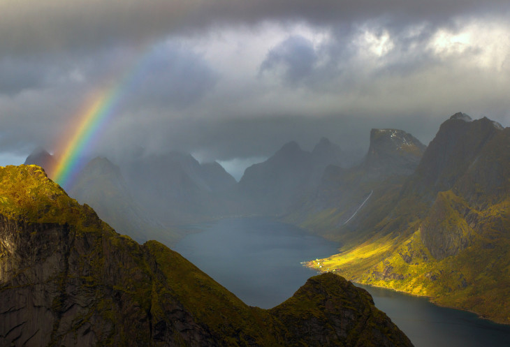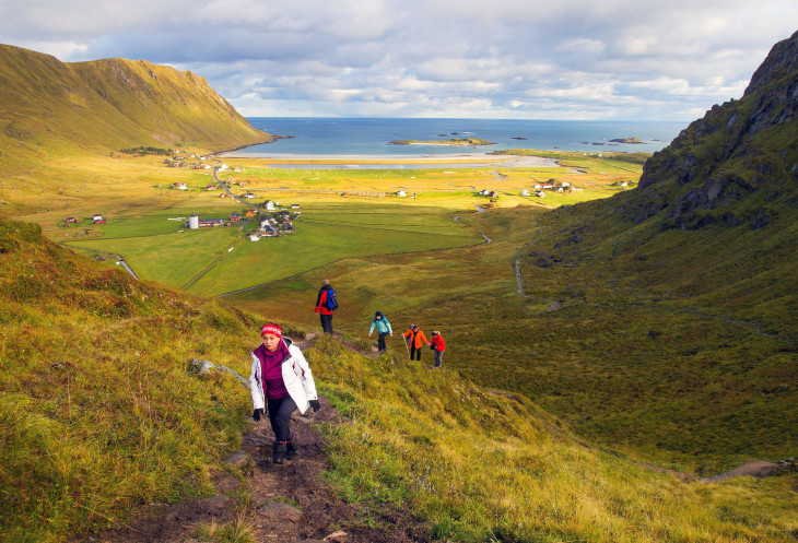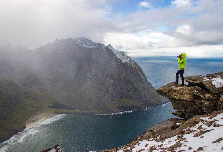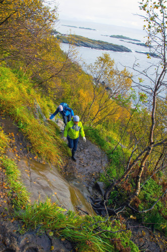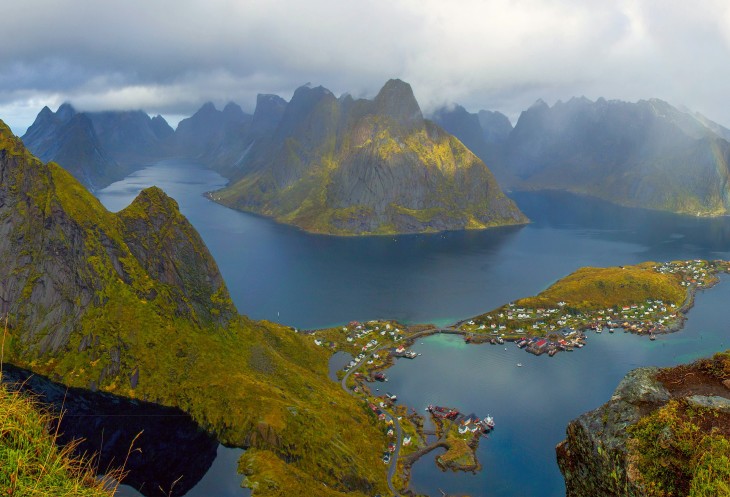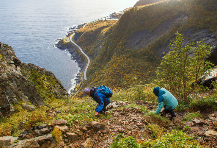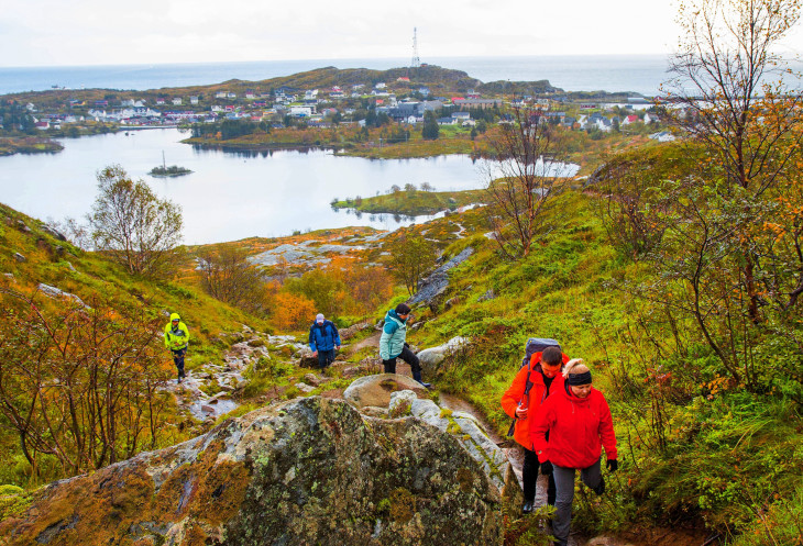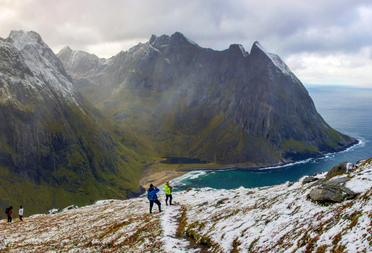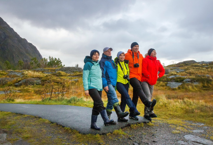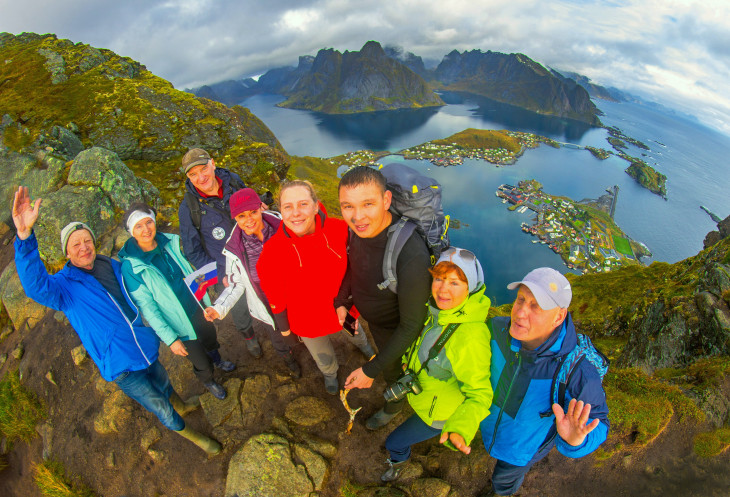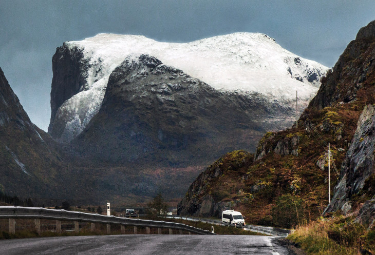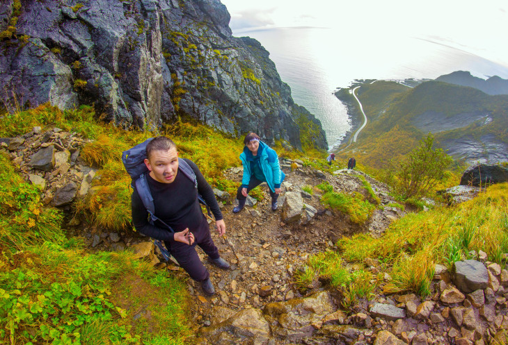 Поставили машины на смотровой площадке на выезде из городка Рейне и, убедившись, что облачность поднимается и дождика уже почти нет, трогаемся к началу подъема на гору Рейнебринген. С прошлого раза запомнил, что вид с нее один из самых лучших на Лофотенах.