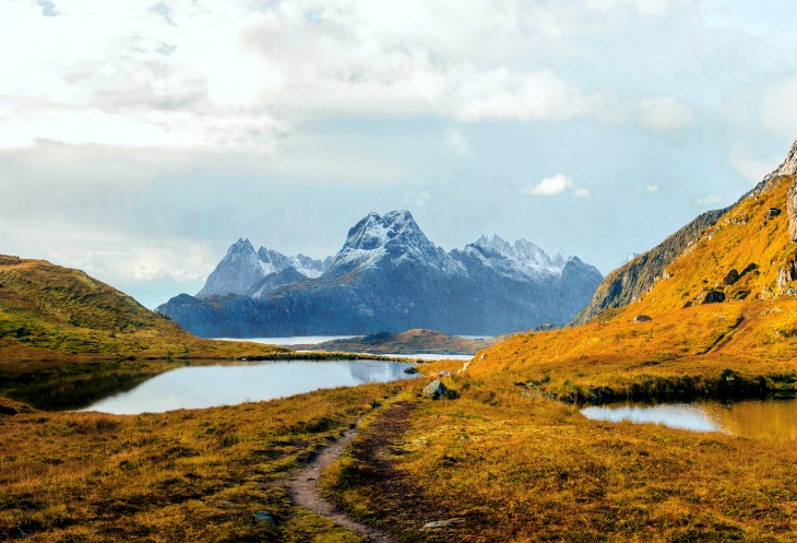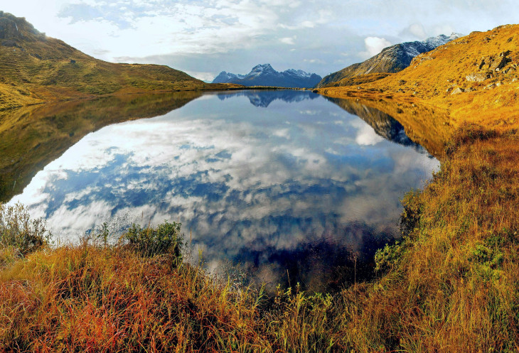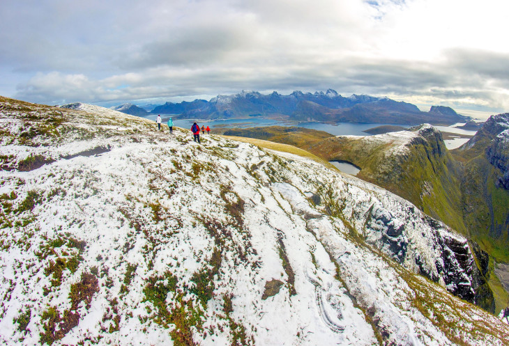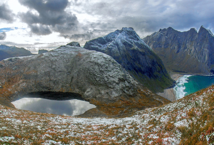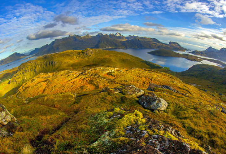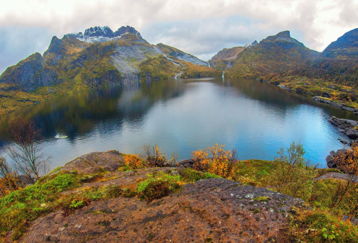 На спуске делаю несколько снимков с объективом «рыбий глаз» и еще раз убеждаюсь, какие красивые Лофотены и какая красивая наша планета!