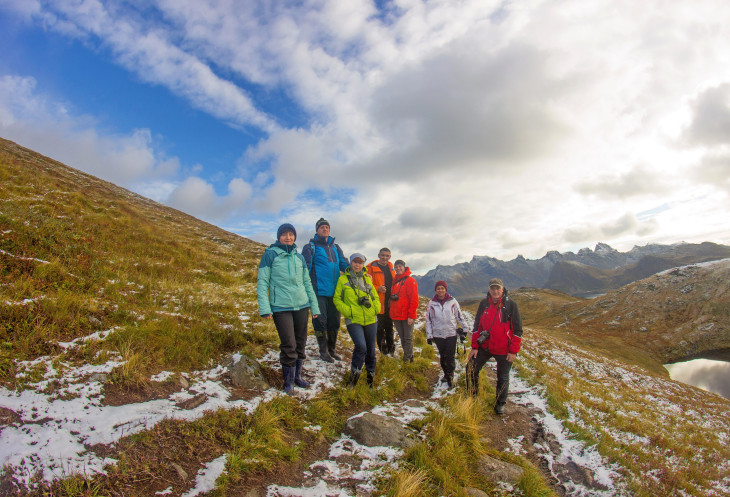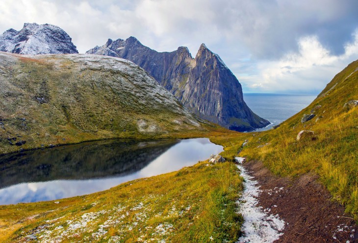 Небольшой крутенький подъем по хорошей тропе и вот мы уже на перевале у озера Ейнангсватнет, фу, едва выговорил!