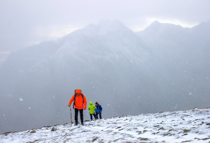 И тут на нас довольно неожиданно накатывается большая туча, становится мрачно и начинает идти не дождь, а снег! В какой-то момент видимость ухудшается и мы оказываемся посреди снежной метели