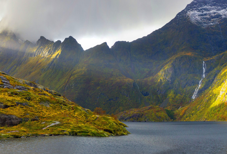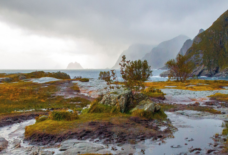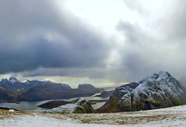 Сегодня нам предстоит забраться на гору Райтен (около 550м над уровнем моря), и, если будет желание и останется достаточно сил, спуститься еще и на один из красивейших пляжей Лофотенских островов – Квалвик. В прошлую поездку мы на нем побывали и действительно он нам тогда очень понравился. И я помню, как тогда «облизывался», глядя на эту самую гору Райтен, с которой должен открываться великолепный вид на окружающие горы и сам пляж. И вот сегодня, наконец, эта моя мечта должна осуществиться!