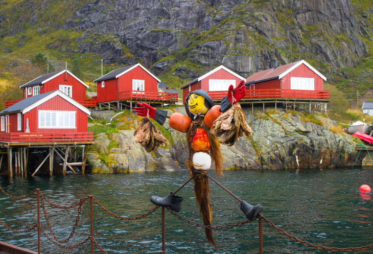 На окраине поселка Фредванг оставляем машины. Тут есть возмутительное объявление, которое гласит, что стояка платная, 25 норвежских крон с авто (около 170 руб. на наши деньги)! Но ведь стоянка грунтовая и вообще никак не оборудована. То есть, кое какое оборудование имеется, а именно: предупреждение о видеокамере и ящик, похожий на почтовый, где гремят оставленные предыдущими туристами норвежские денежки. А у нас-то норвежской налички нет и в помине. Оглядываемся, где можно оплатить стоянку карточкой, и не находим. Ну и ладно, потом разберемся. А сейчас, трогаемся: