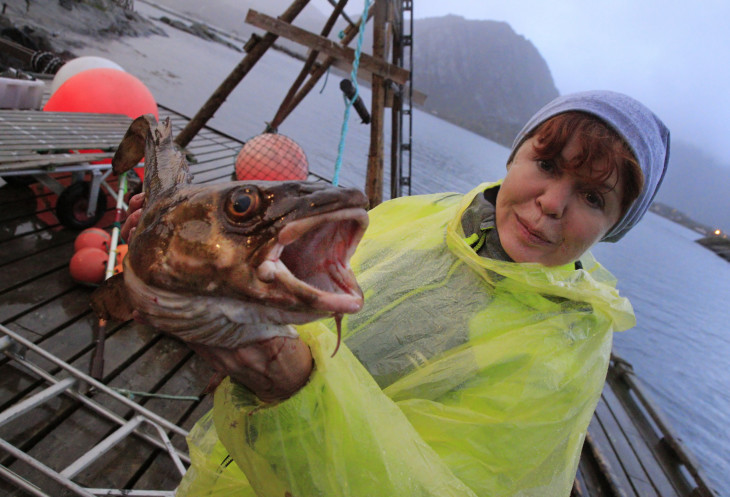 Подъехали к том месту где это произошло в прошлый раз и… О чудо! Стоит несколько ящиков с рыбой! Хозяев, правда нет, но есть какие-то местные ребята, которые нам объяснили, что хозяева ловят треску для ресторана, а эта рыба по каким-то кондициям не подошла.