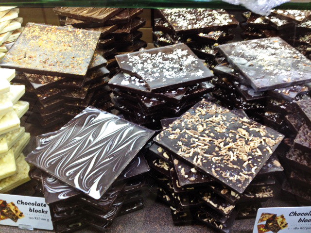За 270 чешских крон вам расскажут всё о шоколаде, покажут, как делают шоколад и вы поучаствуете в этом процессе. В общем, всё это мы уже проходили, когда ездили в г. Режь на шоколадную фабрику и сами делали шоколад под руководством шоколатье. Поэтому не стали тратить наличность и время и ограничились осмотром коллекции и кое-что прикупили на сувениры. А ещё где-то недалеко от этого музея есть музей шоколадных картин, а их создателя, Владимира Чеха, многие называют не иначе как чешским Пикассо. Но об этом я узнала только что, при написании данной заметки. Интернет- великая вещь!