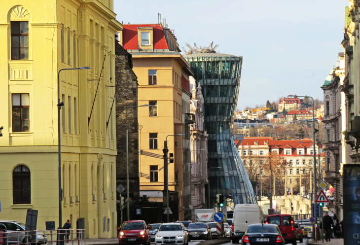 Ну всё, хватит на сегодня музеев. Перекусили, передохнули, и отправились в путь, куда глаза глядят. А глаза глядели в сторону танцующего дома. От Вацлаваки по трамвайной линии буквально 10 минут ходьбы.