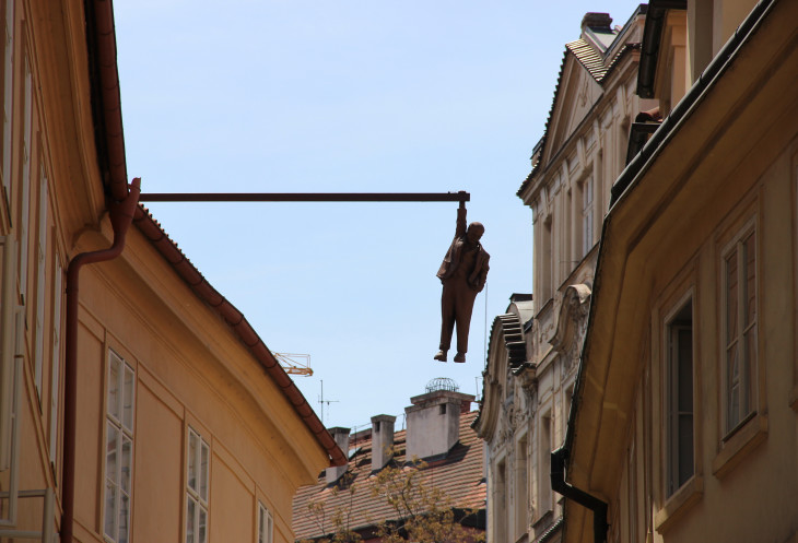 Ещё одна скульптура провокационного скульптора Давида Черного- это изваяние «Висящий человек», скульптура Зигмунда Фрейда высотой 220 см. Памятник Зигмунду Фрейду «Висящий человек»