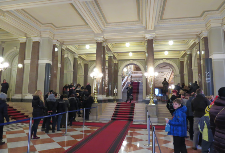 Жили мы в 2-х минутах от музея, на Вацлаваке. Пришли к открытию, в 10 часов двери распахнулись и народ разбрёлся по двум кассам. Отстояли минут 30, купили билеты по 250 крон.