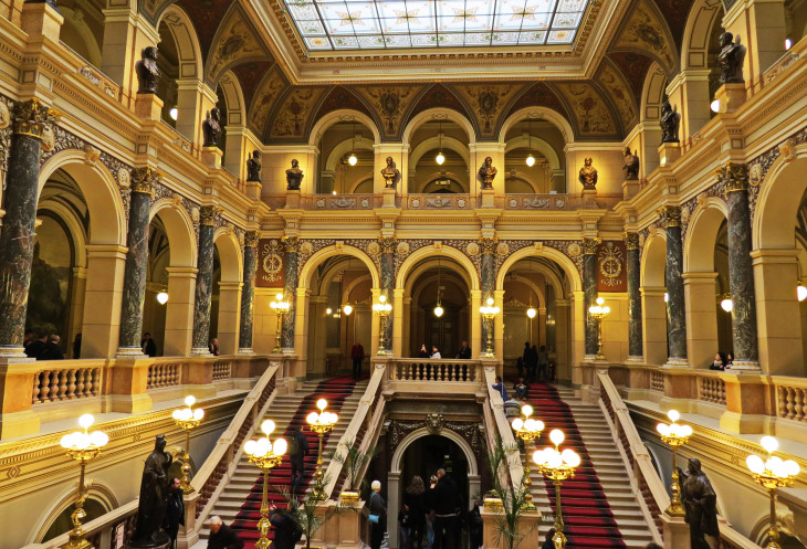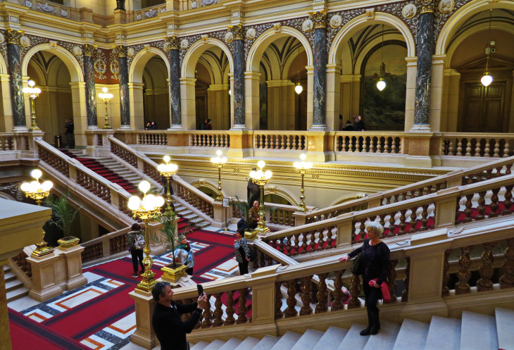 Восхитил интерьер здания: настоящий дворец! Лестницы оформлены картинами, принадлежащими известным художникам, холл украшен скульптурами Людвига Швантхалера.