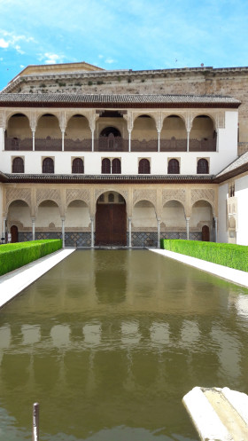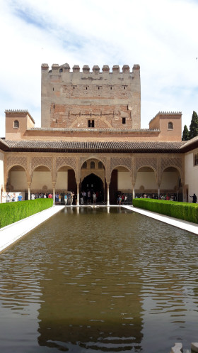 Как проходить на территорию комплекса (а это, кроме дворца Насридов, и крепость,и дворец Карла V, и сады Хенералифе) в интернете масса информации. Главное,точно во время,обозначанное в билете, придти к входу во дворец. Остальное на ваш выбор- гуляете,как вам хочется. При входе на территорию комплекса вы получаете под залог аудиогид,которые даст вам общие сведения о всех объектах мимо которых вы будете проходить.