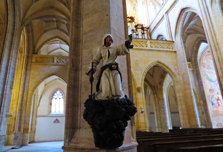 В свое время за необычность архитектуры храм был отнесен к самым необычным готическим культовым строениям Центральной Европы. У храма находится смотровая площадка, которая открывает красивый панорамный вид на исторический центр Кутной Горы и виноградники.
