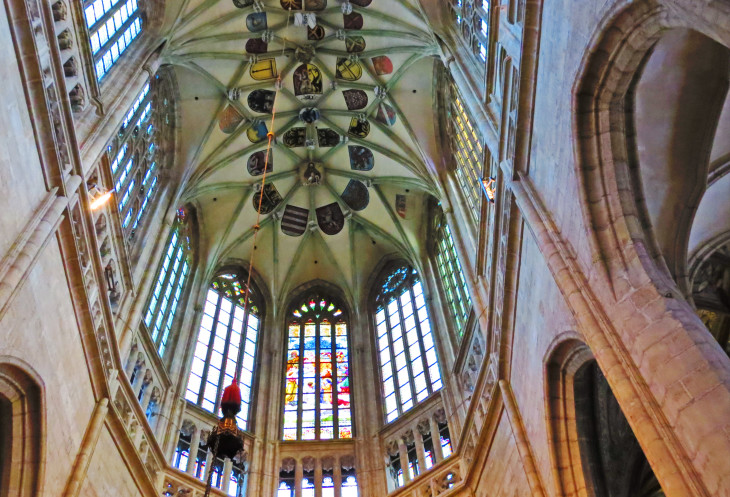 На потолке храма изображены гербы тех богатых кутногорских семейств, которые жертвовали свои деньги на строительство.