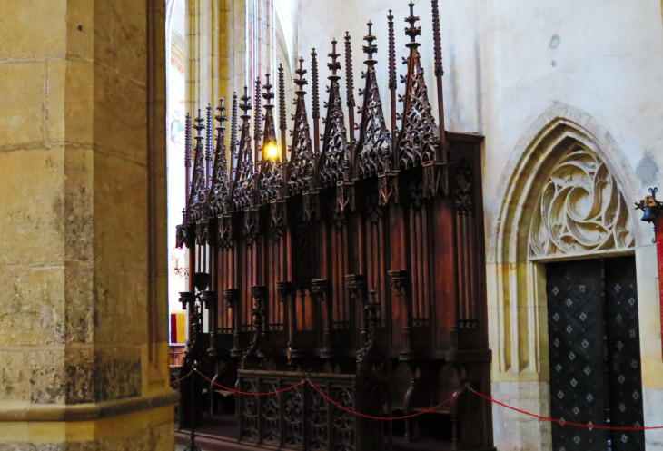 На хоровой скамье ни один элемент резьбы не повторяется.