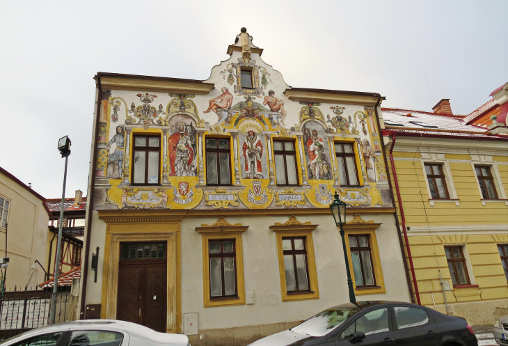 Слева от Влашского дворика стоит очень примечательное здание, эффектно расписанное яркими фресками. Это Дом трёх королей. Дом Трех Королей