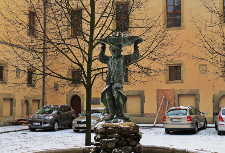 Сегодня во Влашском дворе открыт музей монетного дела, в который мы не попали. Зато во дворе крепости стоит фонтан с бронзовой фигурой рудокопа.Фонтан "Рудокоп"