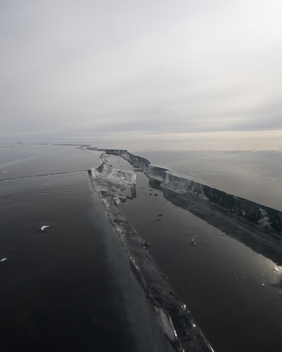 А еще он все время "разговаривает": хрустит, вздыхает, булькает. Иногда можно увидеть, как под ногами разбегаются сеточки трещинок. А один раз мы слышали, как где-то далеко разошлась большая становая щель. Саму трещину мы не увидели, и даже не понятно, сколько километров до нее, но по льду дошел не только звук, но и вибрация, так что эту трещину мы ощутили всем телом. Звучит это все страшно, но, на самом деле, опасности нет - мелкие трещинки ничего этого двухметровому льду не сделают, а большие, ну они как большие (мы их потом видели) ну, десять сантиметров, очень редко больше.