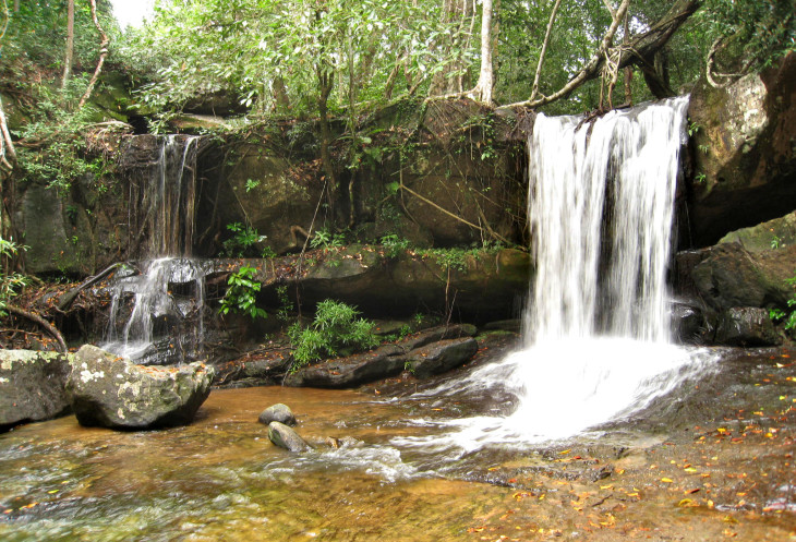 В моей экскурсионной программе была запланирована поездка в Пном Кулен и подъем к реке 1000 лингамов. Это священное и сакральное место для камбоджийцев. Они стремятся хотя бы раз в год посетить его в качестве паломников. На плато Кулен протекает река 1000 лингамов (символических изображений бога Шивы, одного из главных богов индуизма), которая заканчивается священным водопадом, купание в котором заряжает паломников силой и удачей древних богов. Поднимались мы туда по хорошо утоптанной дорожке (в программе это называлось «посещение джунглей»).