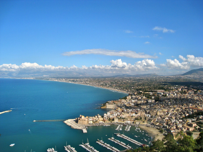 Второй подвиг Паоло – спасение двух наших соотечественниц. Как объяснила нам Светлана, в мае не рекомендуется купаться в морях, омывающих остров из-за какой-то ДЛИННОЙ волны. Ну, затягивает она в море. А две наши бравые девицы, сказав, что у них разряд по плаванию, не послушались. Результат – не могут выбраться на берег. Отважный Паоло бросился в пучину морских вод и вытащил обеих на какой-то крохотный островок, где они и ждали часа два катера-спасателя. Но этим положительные качества Паоло не ограничиваются. Очень он любит свою Сицилию и готов сделать небольшой объезд, чтобы показать новые красоты туристам. В Эриче мы поднимались одной дорогой, а спускались другой. И все ради того, чтобы хоть со смотровой площадки, хоть издалека полюбоваться на Кастелламмаре-дель-Гольфо, которого не было в нашей программе.