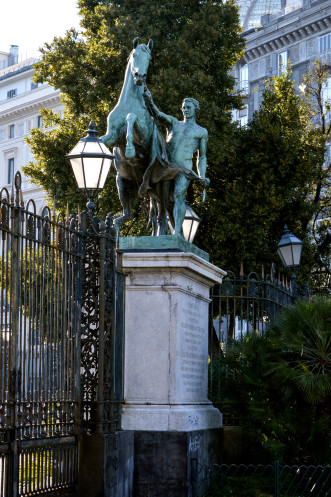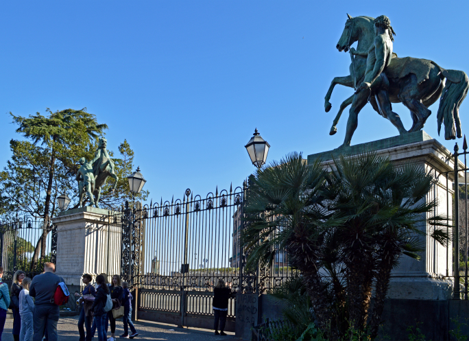 Не все знают, что эти скульптуры два года стояли на Аничковом мосту в Питере, прежде чем переехать в Неаполь. Отлитые в бронзе, первые две скульптуры появились на западной стороне Аничкова моста в Петербурге в 1841. Скульптуры же на восточном берегу повторяли западные, но были временными, из гипса, покрашенного под бронзу. Когда им на замену отлили бронзовых коней, то они даже не успели встать на свои места - прямо с литейного двора Николай I подарил их прусскому королю Фридриху Вильгельму IV. Они и сейчас находятся в Берлине. А гипсовые скульптуры были заменены на бронзовые только в 1844 г., но простояли недолго, через два года Николай I подарил и их королю обеих Сицилий за гостеприимство, оказанное русской императрице во время путешествия по Италии. И в 1846 г. кони оказались в Неаполе. Король Фердинанд II Бурбон пришел в полный восторг когда увидел статуи и наградил Петра Клодта Неаполитанским орденом.